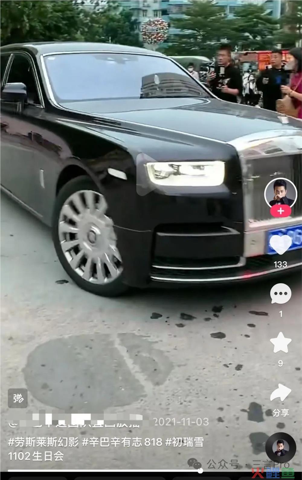比如2023年12月,网红花33在社交平台上宣布自己提了一辆价值1300万的劳斯莱斯幻影加长版,尽显豪华。