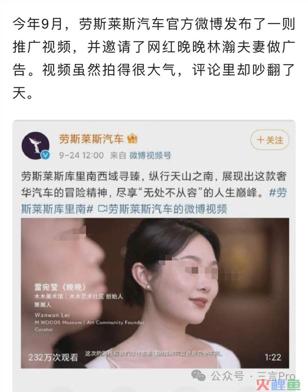 所以此前劳斯莱斯特地请了网红来代言,或许认为网红是国内劳斯莱斯购买主力。