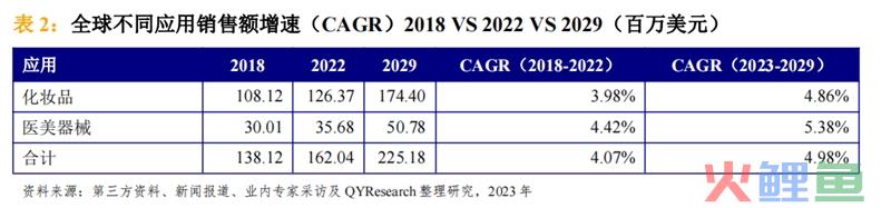 据QYResearch数据显示,2022 年,全球医美仿生肽原料市场销售额达到了 1.62 亿美元,预计 2029 年将达到 2.25 亿美元,年复合增长率(CAGR)为 4.98%(2023-2029)。