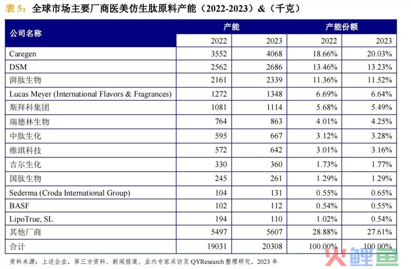 ( 2023 全球医美仿生肽原料主要厂商市场地位 数据来源QYResearch)