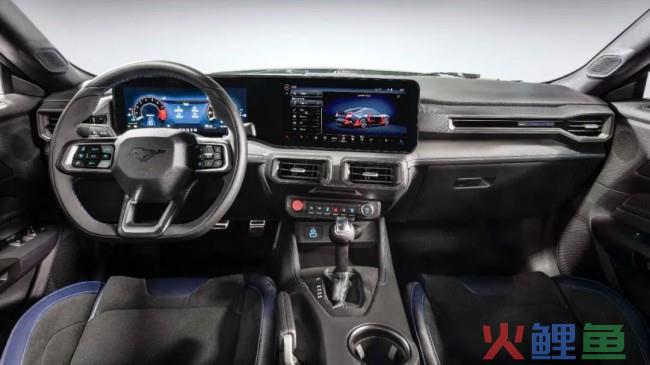 内饰方面,由于中规版的内饰还没有正式公布,所以我们暂时以海外版作为参考。在内饰设计上,层次感很强的中控台造型,以及时下流行的双联屏设计,让新款福特跑车Dark Horse的内饰看起来更加现代、运动。
