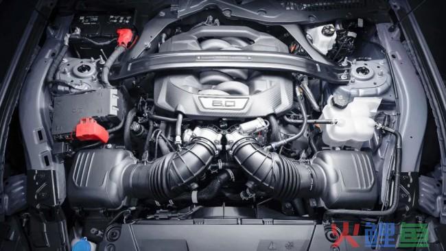 在发动机设计上,为了实现 100 马力以上的升功率目标,新发动机采用了双节气门设计,也就是把 8 缸分成 2 组,每组单独对应 1 个节气门,从而提高了发动机的进气流速。材料工艺方面,新款福特跑车Dark Horse上搭载的5.0L V8 发动机采用了锻造曲轴和活塞连杆,并且对凸轮轴进行了加强,从而使发动机有能力长时间维持在7500rpm红线转速运行。