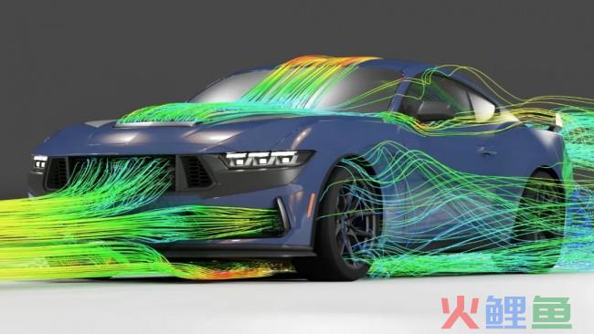 另外,在发动机盖上方,新款福特跑车Dark Horse也配备了通风孔,在高速行驶时,空气经过车头前方的散热器,然后从机盖上的通风孔排出。由于空气在机舱流动比较顺畅,所以通风孔设计间接提升了散热效果。值得一提的是,为了让Dark Horse能够像赛车一样长时间激烈驾驶,福特为它配备了重量更轻、散热效果更好的散热器,以及大功率风扇。同时,发动机机油、后轴差速器也配有散热器。