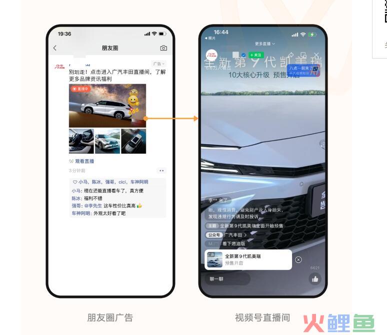 朋友圈常规广告跳转直播间案例 图源:微信广告助手