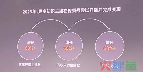 1)2023年有更多知识主播在视频号尝试开播,并完成变现。优质开播主播数、有收入主播数、总主播收入,都比去年同比增长了60%以上。