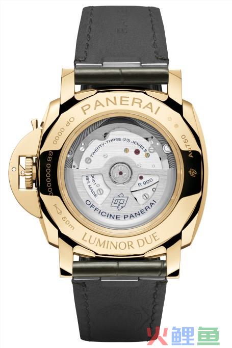 通过透明表背,佩戴者可以欣赏到P. 900 自动上链机械机芯的精妙构造,领略沛纳海高超的制表技艺。这款机芯不仅能够提供长达 3 天的动力储备,还具备出色的防水性能,达到 5 巴,确保腕表在各种环境下都能可靠运行。而黄金表带针扣的设计同样注入了精致的细节,与腕表完美融合,展现出无与伦比的华贵。