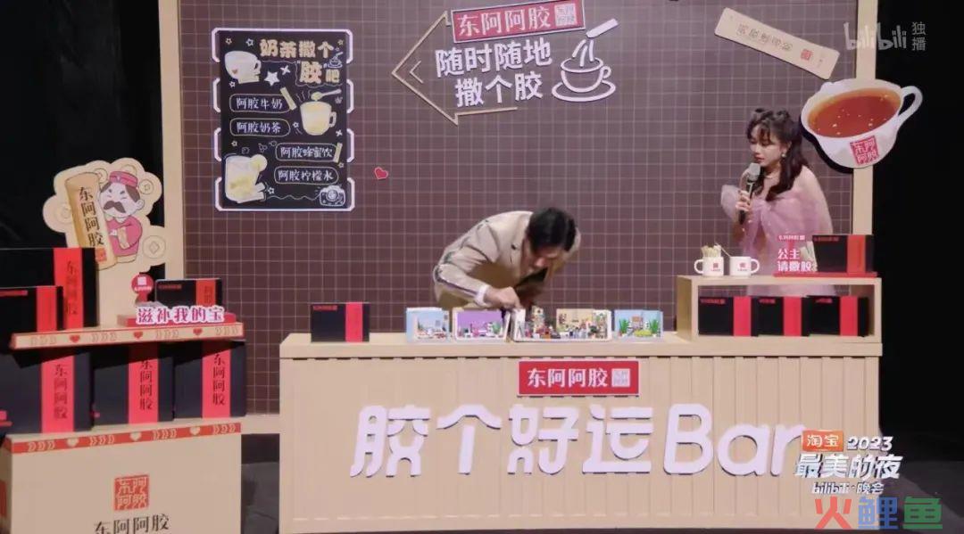 东阿阿胶跟 B 站跨年晚会连续合作了 2 年。第一年,是结合旗下阿胶零食品牌桃花姬,与李玉刚、刘瑾睿演唱的《若把你·声声慢》结合,走国风路子。在 B 站跨晚及一系列品牌动作后,此前连续 8 年没有增长的桃花姬,2023 年 1 月生意将近翻番,整个 2023 年增长超过 60% 。