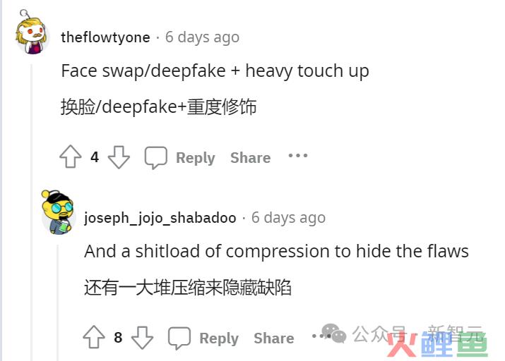 大家一致同意是用了换脸、deepfake,然后进行了一些修饰。