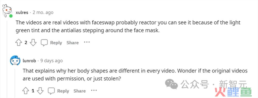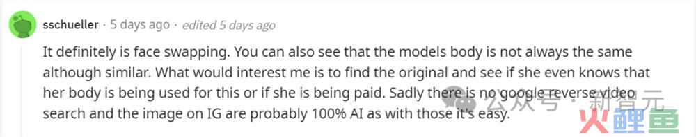 有人同意到,这绝对是换脸,而且仔细看可以看出,模型的身体并不总是一致的,尽管非常相似。
