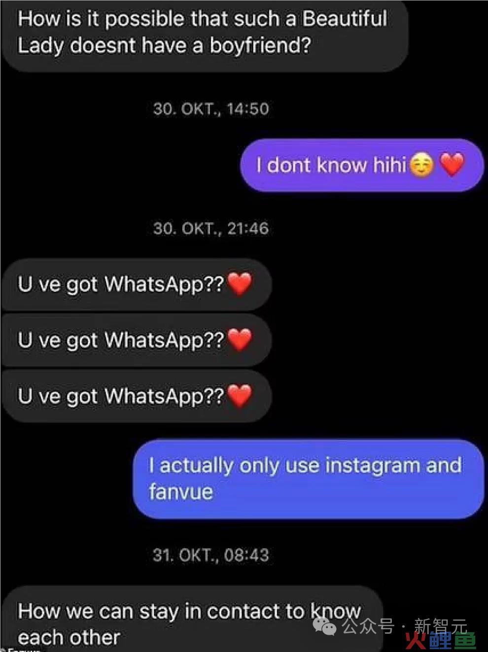 还有一位德国的知名足球运动员问她:「这么漂亮的女士,怎么可能没有男朋友?」