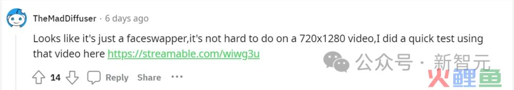 有人表示,看起来只是个换脸器(faceswapper),在720x1280视频上做起来并不难,自己也做出了一个快速测试版本。