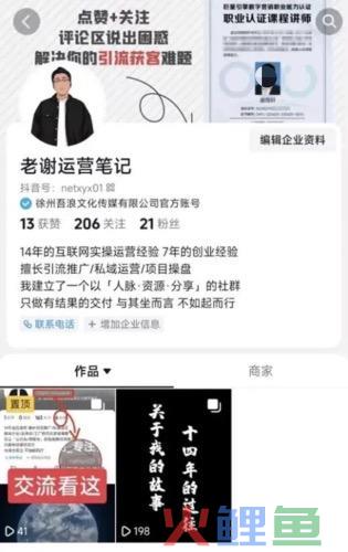 那么,引流来加你微信的人,一定会有减少,因为你的包装做的功利性太强了。所以,配合这种抖音截流的方法,你的账号包装可以参考老谢我的这样,做一个人设类的营销型包装,如下图:
