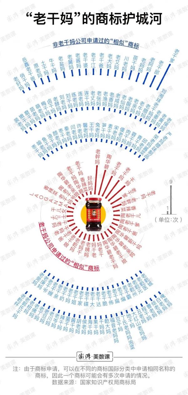 而要说在商标问题上最有远见的公司老干妈绝对算一个看完老干妈的商标护城河果酱妹已经不认识字了想到和没想到的亲戚老干妈都已经抢注了商标