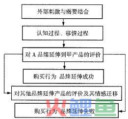 由图1可知,外在的刺激或内在需要唤起消费者的某种动机(寻找能满足需要的产品和品牌),由满足需要的驱动以及消费者对A品牌的态度,通过心理要素及其机能对品牌与延伸产品进行感知反映.同时,激活头脑里储存的有关品牌、产品的相关知识、经验和体验推动认知活动的开展.品牌及其延伸产品与消费者已有的经验、知识相联系,经过联想、想象、判断、推理和思维等认知活动,逐渐形成对A 品牌延伸到甲产品及其品牌的新知识;这种认知结果与需要相联系,产生对延伸新产品及其品牌的观念上的体验反映,即品牌延伸产品的情感.在认知和情感的影响下,结合需要满足状态,则形成对品牌及其延伸产品行为上的倾向或意图.