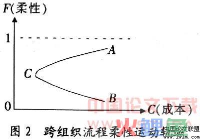 综上所述,令C表示成本,F=f(C),F∈[0,1),跨组织流程柔性轨迹如图2所示: