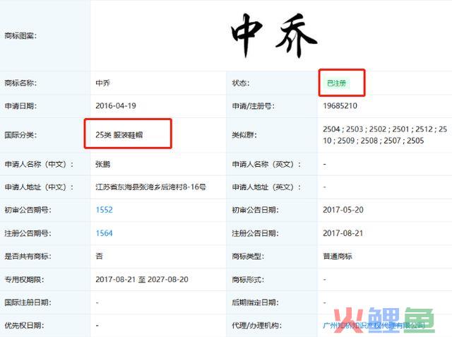 但“中乔体育”并未进行任何商标注册。然而,早在2006年,就有一个企业注册了相同的25类“中乔”商标。