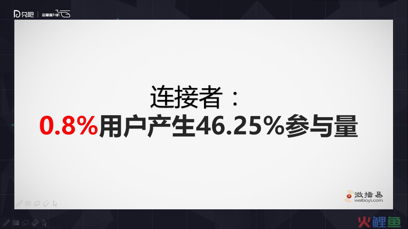 刚才那两个图谱,有一个很简单的结论。这么大的活跃量、定单量、转化量以及新增量,只需要搞定其中1%的用户,就可以搞定一半的参与量。