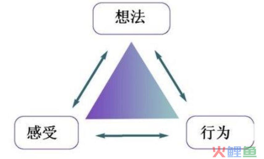 心理学有个经典的认知三角形理论广泛应用于心理咨询与治疗,同时我们可以用这个三角关系来解释有理有据的用户认知教育和唤起用户情绪对于用户购买行为的重要性。