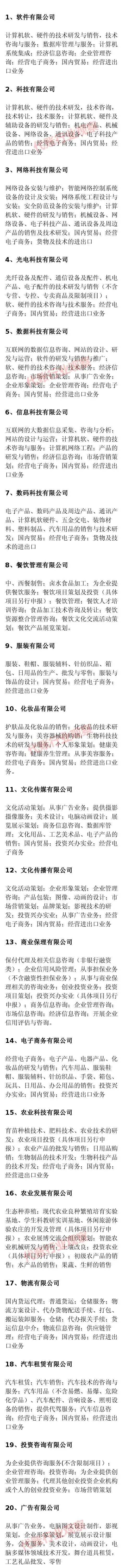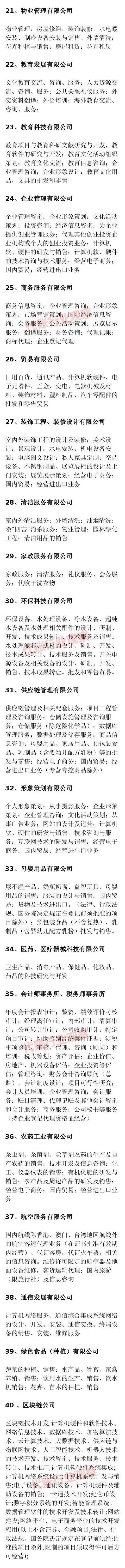 最后补充列举一些行业的经营范围表述(仅供参考):