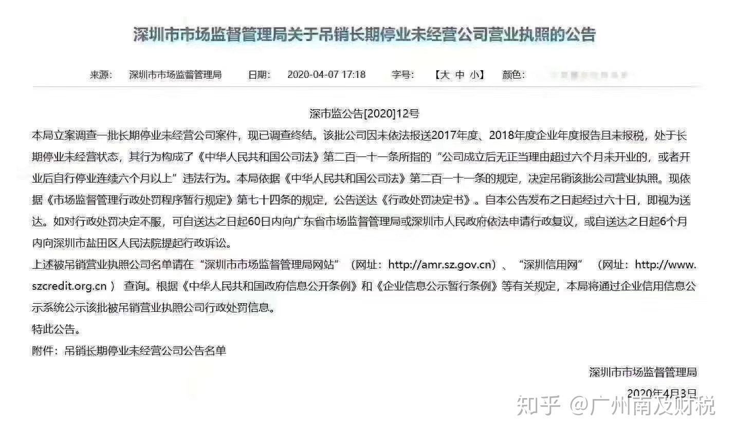 看下最新2020年以深圳为例吊销的执照