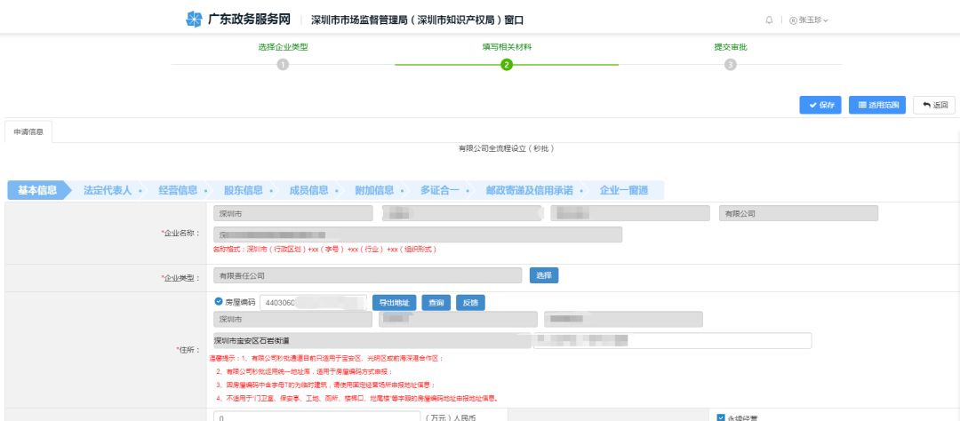 通过人脸识别后,在【企业登记地】一栏选择“深圳”,然后选择公司名称。