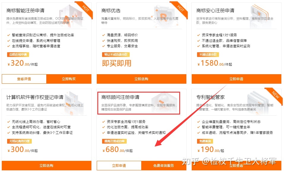 还有一个【商标顾问注册申请】,我看了下是680元。