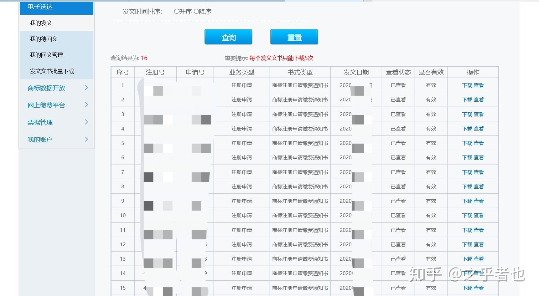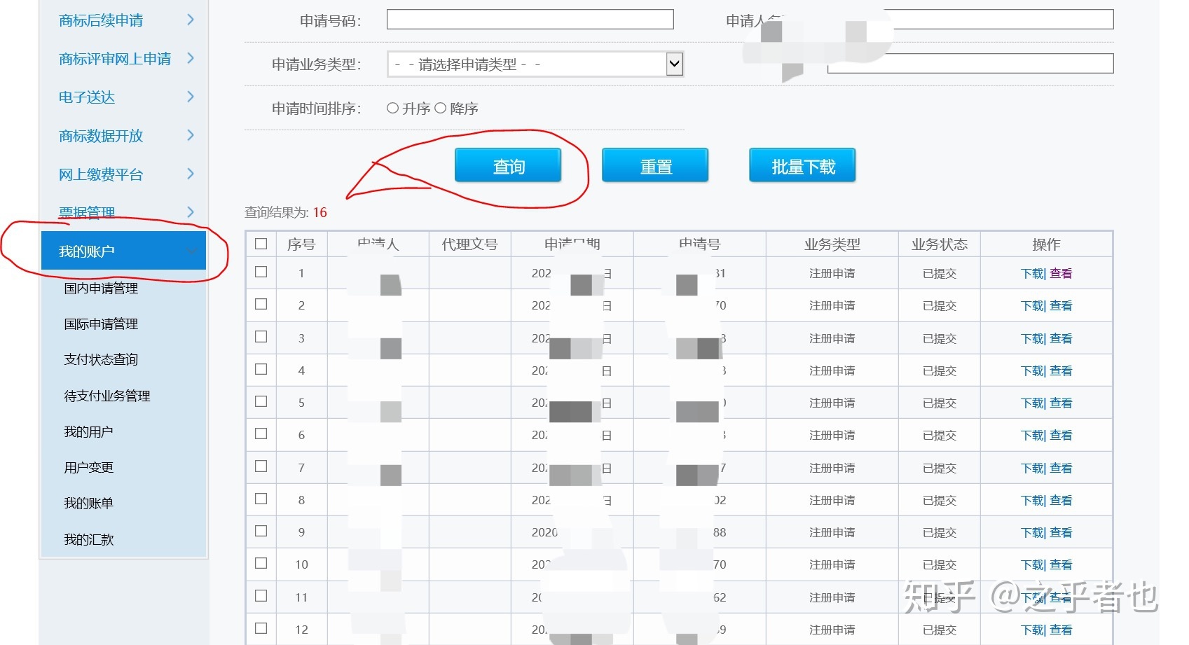在我的账户中输入你的姓名等筛选条件,可以查看申请的业务,点击查看下载PDF文件。